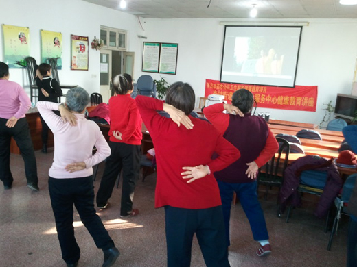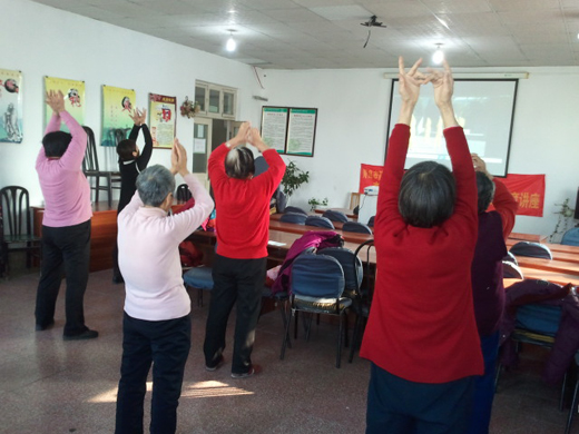 其中,為宣傳中醫(yī)養(yǎng)生文化,推廣健康養(yǎng)生方法,工作人員每天下午2:00-4:00,帶領(lǐng)社區(qū)居民在健康教室利用視頻資料學(xué)習(xí)中華通絡(luò)操。