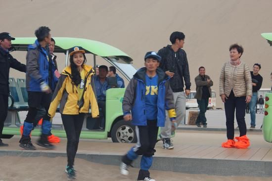 10月15日《奔跑吧兄弟》在敦煌鳴沙山月牙泉拍攝,當天早上七點多成員和嘉賓們就起床開始拍攝,晚上11點多才結(jié)束。這個季節(jié)的敦煌晝夜溫差很大,早晚溫度接近零度,成員們卻只穿著長袖T恤和一件外套。拍攝地鳴沙山是敦煌最著名的景點之一,以壯闊的沙漠景觀著稱,氣候干燥,日照強烈,成員們拍攝時運動量很大,現(xiàn)場的工作人員準備了上百瓶礦泉水,時刻為藝人補充水分。