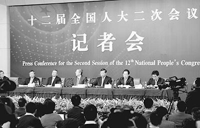 2014年3月11日,十二屆全國人大二次會議記者會在北京舉行。多位部委領(lǐng)導應邀參加記者會并回答中外記者提問。 古雨攝