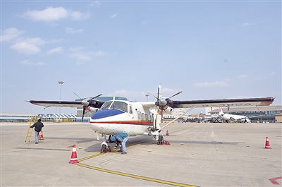 ????青島日報/青報網訊 3月9日13時30分,青島市人民政府人工影響天氣辦公室商調的增雨“運12”飛機飛抵青島流亭國際機場,為今年上半年飛機增雨工作做好了準備。