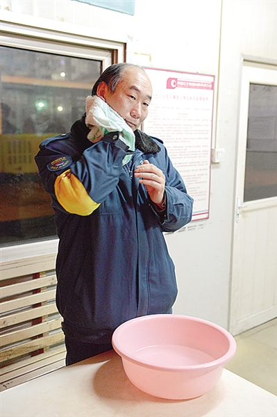 為了驅(qū)除睡意,出車前用涼水洗把臉。