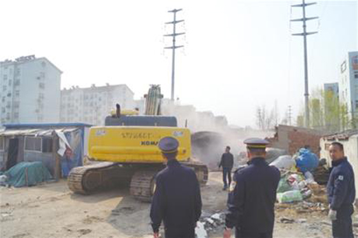 按照環(huán)境整治計(jì)劃,城管、公安、消防部門共同組成聯(lián)合整治小組,通過排查摸底、宣傳、勸說等方法確保隱患整改有序進(jìn)行。城管部門在前期對(duì)除某下達(dá)整改通知時(shí),除某認(rèn)為10余年都這么過來了,就仍抱著僥幸心里沒有自行整改。昨日上午,湘潭路街道辦事處聯(lián)合李滄城管、李滄公安等部門出動(dòng)60余人及大型機(jī)械2臺(tái)對(duì)10余處高壓線下違章建筑進(jìn)行了拆除。