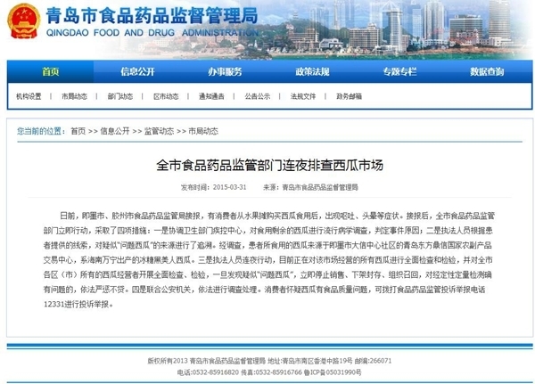 青島市食品藥品監(jiān)督管理局網(wǎng)站截圖