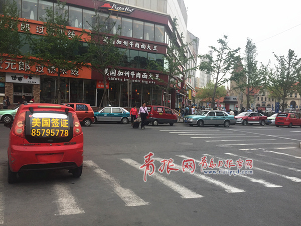 進(jìn)入5月中下旬,來青島旅游的外地游客數(shù)量逐漸增多,在火車站附近的公交站,隨處可以看到拎著大包小包的行李、排著長隊等待公交車的旅客。在華聯(lián)商廈附近的公交站前,除了停在此處等待拉客的出租車外,還有近十輛醒目的紅色四輪代步車,車體上印著“海底世界、海洋世界、嶗山“等景點名稱,以及手寫的”票價1元?!?/p>