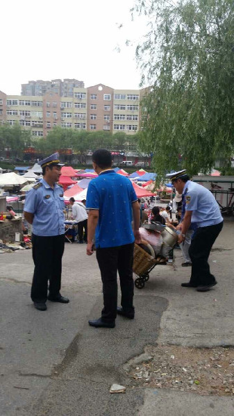 又逢李村大集,在協(xié)勤大隊的大力協(xié)助下,四點上崗,九水路13號秩序井然,商販全部清理。