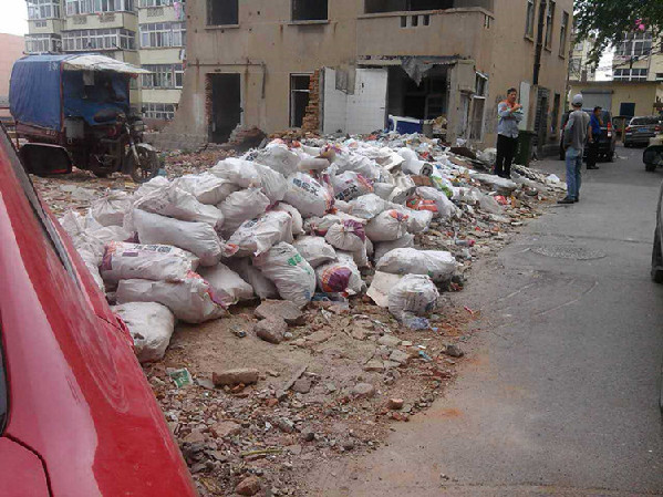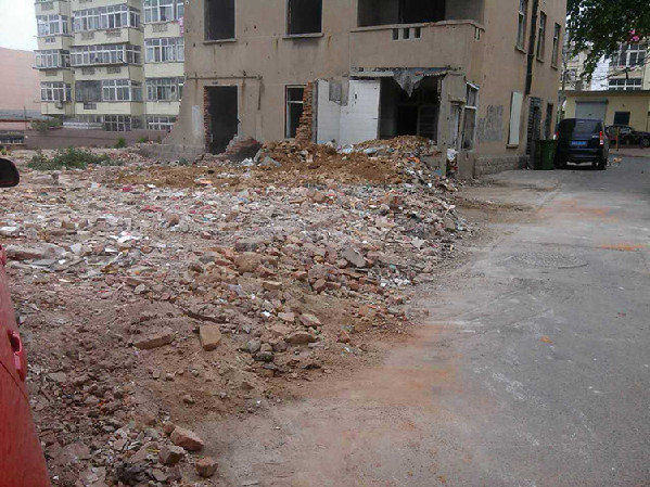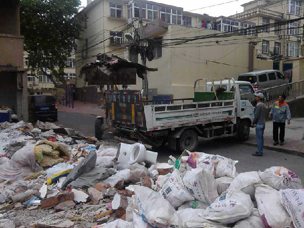 城管中隊(duì)清理北山拆遷區(qū)域建筑垃圾