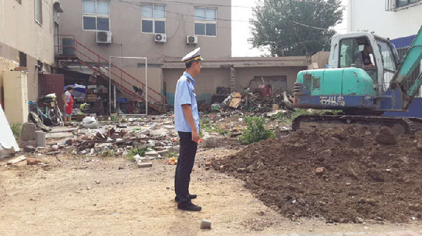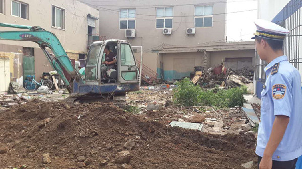 湘潭路中隊(duì)聯(lián)系轄區(qū)企業(yè)出動(dòng)機(jī)械清理衛(wèi)生死角