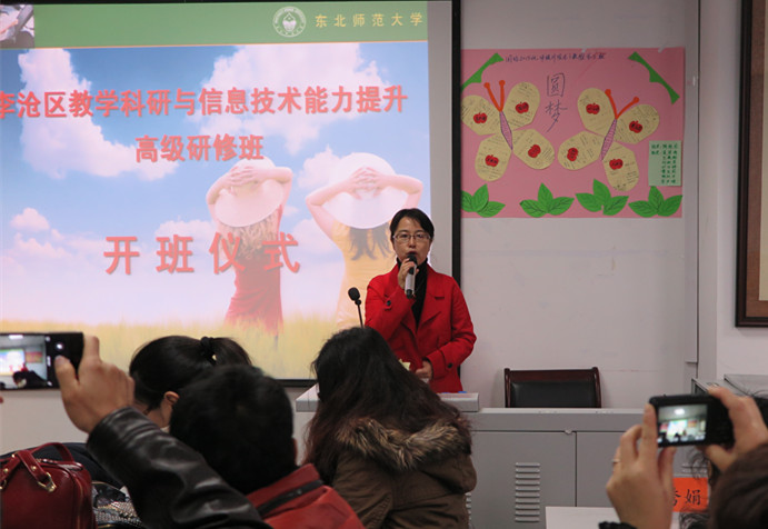 日前,2015年李滄區(qū)教育科研與信息技術(shù)能力提升高級(jí)研修班在東北師范大學(xué)舉行了簡(jiǎn)短而隆重的開班儀式。東北師范大學(xué)教育學(xué)部教師發(fā)展學(xué)院院長(zhǎng)梅秀娟、李滄區(qū)教育研究發(fā)展中心副主任譚玉紅、教科室主任陳杰出席開班儀式,區(qū)各中小學(xué)、幼兒園教科研、信息技術(shù)分管干部50余人參加了開班儀式。
