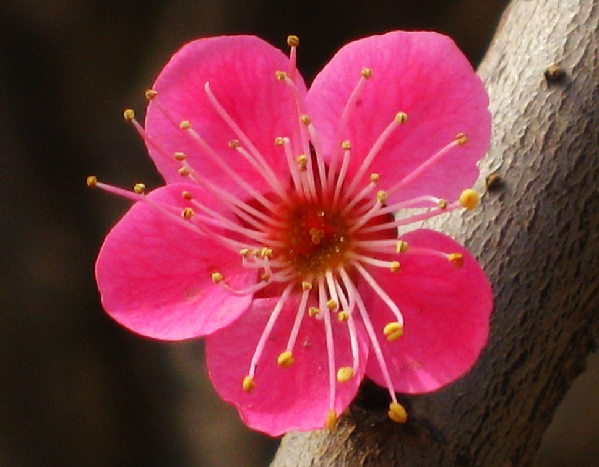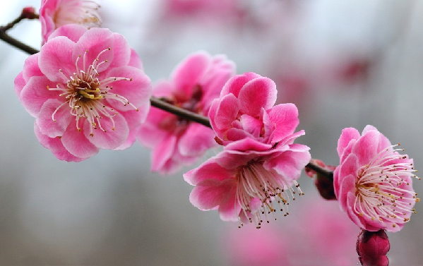 梅花原產(chǎn)我國(guó),是薔薇科李屬的落葉喬木。因開(kāi)在冬春之際,梅花又被稱(chēng)春梅,花開(kāi)時(shí)香氣清幽,神韻絕俗。梅花品種及變種很多,目前品種有30多個(gè),其品種按枝條及生長(zhǎng)姿態(tài)可分為葉梅、直角梅、照水梅和龍游梅等類(lèi);按花色花型可分為宮粉、紅梅、照水梅、綠萼、大紅、玉蝶灑金等型。其中宮粉最為普遍,花粉紅,著花密而濃。