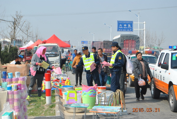 ?連日來,青島市公路管理局平度分局組織路政執(zhí)法人員,逐個(gè)集貿(mào)市場(chǎng)宣傳《公路法》和《公路安全保護(hù)條例》等法規(guī),同時(shí)做到邊宣傳邊依法清理占路經(jīng)營行為,消除道路安全隱患,確保公路安全暢通。 |