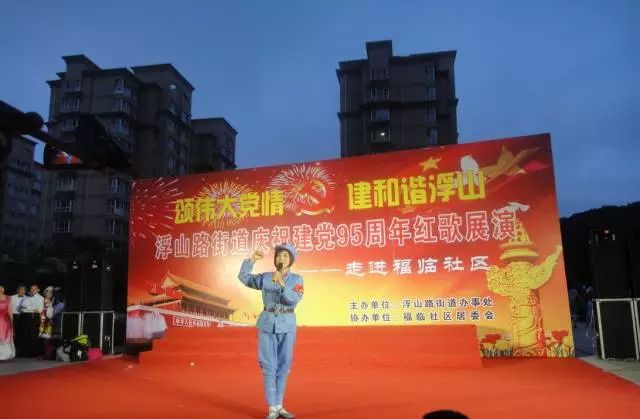 為隆重紀念中國共產(chǎn)黨成立95周年,回顧黨的光輝歷程,謳歌黨的豐功偉績,進一步激發(fā)基層黨組織活力,增強廣大黨員的光榮感、使命感,引導(dǎo)廣大黨員干部更加熱愛黨、擁護黨,激勵各級黨組織和共產(chǎn)黨員繼承和發(fā)揚黨的光榮傳統(tǒng),全面推動科學(xué)發(fā)展、促進社會和諧、服務(wù)人民群眾、加強基層組織建設(shè),再次掀起“兩學(xué)一做”教育活動新熱潮,7月7日晚浮山路街道在福臨社區(qū)小廣場開展“頌偉大黨情、建和諧浮山”紅歌展演活動,吸引了眾多前來納涼的居民觀看。