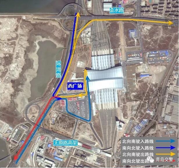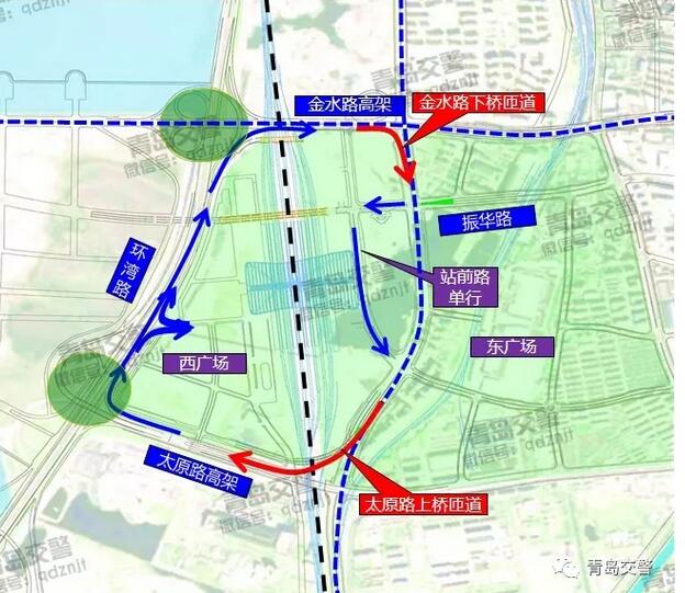 ▲出行提示:  1、明日起,至環(huán)灣路火車(chē)北站現(xiàn)狀路口取消之前,交警部門(mén)將調(diào)整環(huán)灣路火車(chē)北站路口的信號(hào)方案,壓縮進(jìn)出火車(chē)北站的綠燈時(shí)間,請(qǐng)廣大駕駛員盡量選擇太原路立交進(jìn)出火車(chē)北站。  2、環(huán)灣路火車(chē)北站現(xiàn)狀路口封堵后,進(jìn)出火車(chē)北站怎么走,看圖:進(jìn)站路線圖↓↓  延伸:火車(chē)北站交通集散體系規(guī)劃  為統(tǒng)籌火車(chē)北站區(qū)域整體發(fā)展,優(yōu)化交通組織,促進(jìn)各種通行方式有效銜接,火車(chē)北站周邊的交通體系規(guī)劃設(shè)計(jì)為“單向循環(huán)”模式:通過(guò)安順路上設(shè)置太原路匝道、金水路匝道,此兩處匝道與環(huán)灣路、金水路、太原路、振華路、站前路共同形成順時(shí)針的北站快速進(jìn)出站體系。