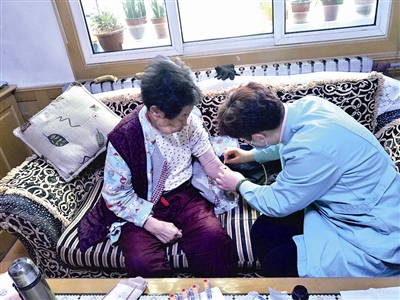 ????“沒想到在家里也能有主任醫(yī)師來看病、做檢查。家庭醫(yī)生團(tuán)隊(duì)會(huì)按時(shí)上門給老人調(diào)整用藥、做家庭護(hù)理指導(dǎo)?!币辉纾顪鎱^(qū)永清路社區(qū)衛(wèi)生服務(wù)中心家庭醫(yī)生簽約團(tuán)隊(duì)來到了居民譚女士家中,為老人采血化驗(yàn),做了心電圖和腹部彩超等檢查。譚女士因患有小兒麻痹癥、高血壓病、糖尿病以及多種嚴(yán)重并發(fā)癥,長(zhǎng)期癱瘓?jiān)诖病⑿袆?dòng)不便,在沒有簽約家庭醫(yī)生之前,老人每次檢查都要多位家屬陪同到上級(jí)醫(yī)院,費(fèi)時(shí)費(fèi)力?,F(xiàn)在,家屬為她與就近的李滄區(qū)永清路社區(qū)衛(wèi)生服務(wù)中心家庭醫(yī)生團(tuán)隊(duì)簽訂了高血壓合并糖尿病個(gè)性化服務(wù)包,家庭醫(yī)生定期上門服務(wù)。
