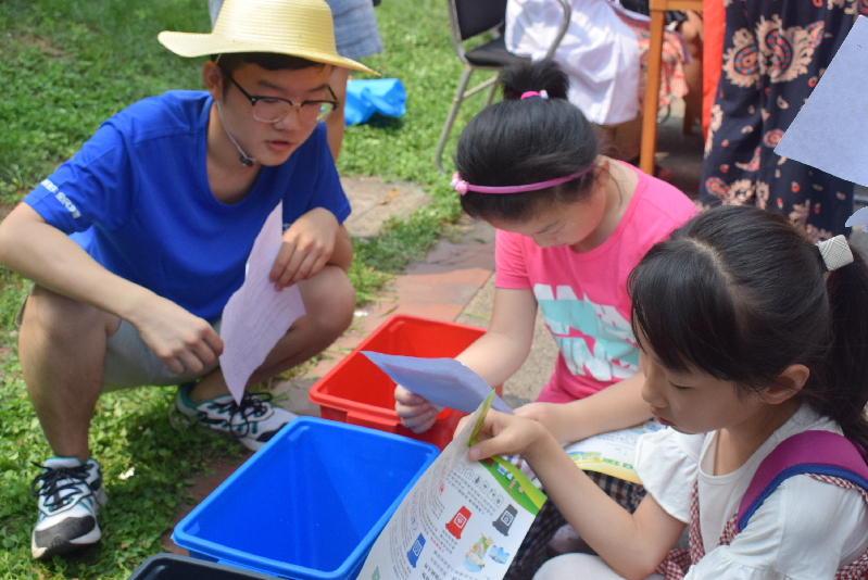 在服務(wù)現(xiàn)場(chǎng),除了日常的磨剪子磨刀、義診、政策咨詢等便民服務(wù)外,人氣最高的攤位就非垃圾分類趣味小游戲莫屬了,居民們通過垃圾分類對(duì)對(duì)碰(套圈)、垃圾分類連環(huán)珠(夾球)等游戲識(shí)別垃圾種類,幫助垃圾“回家”。老老少少一起爭相參與,場(chǎng)面好不熱鬧。來自綠益初心志愿服務(wù)團(tuán)隊(duì)的志愿者們一邊做裁判一邊向居民們講解正確的垃圾分類知識(shí),還現(xiàn)場(chǎng)教授居民利用廢棄物制作垃圾分類桶,并贈(zèng)送給居民,讓大家在游戲的同時(shí)輕松學(xué)習(xí)知識(shí),不斷增強(qiáng)居民垃圾分類意識(shí)。