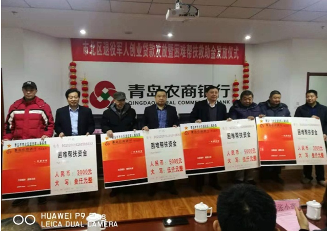青島農(nóng)商銀行市北支行發(fā)放首批退役軍人創(chuàng)業(yè)貸款2筆共計(jì)60萬(wàn)元;困難幫扶救助金發(fā)放儀式共發(fā)放救助金1.6萬(wàn)元,惠及我區(qū)4戶困難家庭