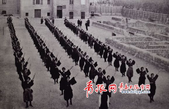 日本在青島設(shè)立的高等女子學(xué)校學(xué)生在做操