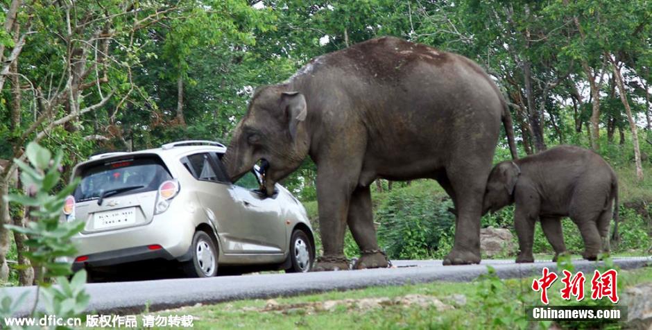 印度大象趁游客自拍偷包 一口吞下包內(nèi)物品
