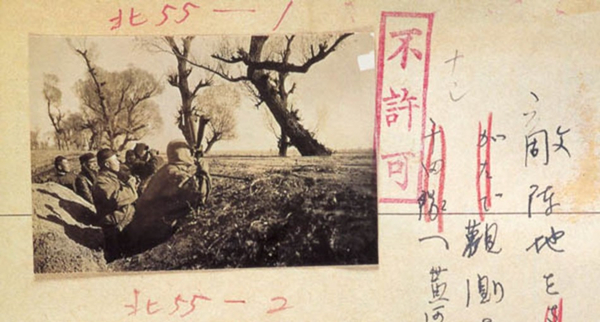 這張“不許可”照片記錄了日本士兵換上了中國(guó)百姓的衣服,在黃河沿岸進(jìn)行偵查行動(dòng)。