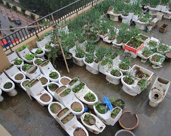 山東菏澤公共天臺(tái)變菜園 馬桶種菜養(yǎng)鴨