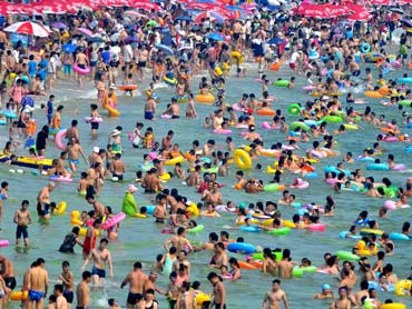 高清:酷暑來襲!陸上人肉燒烤不如海里涮火鍋