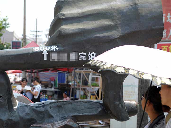 中山路大手雕塑被貼廣告 城管:兩天內(nèi)清除