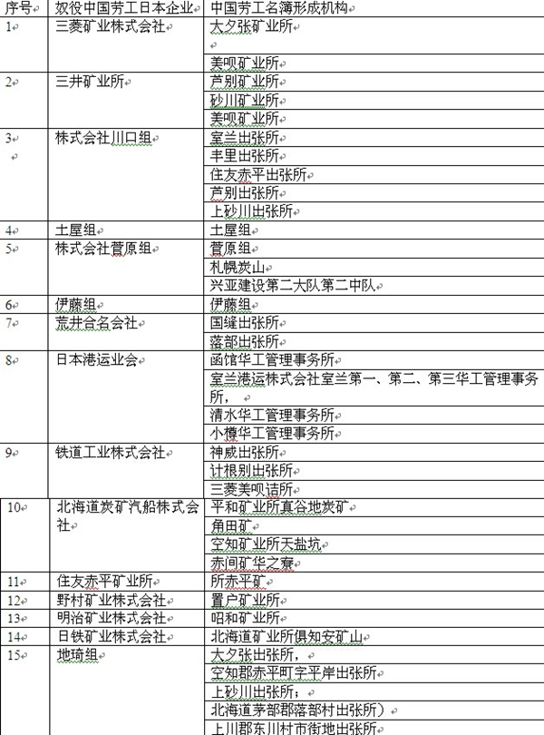 奴役中國(guó)勞工的日本企業(yè)和中國(guó)勞工名簿形成機(jī)構(gòu)