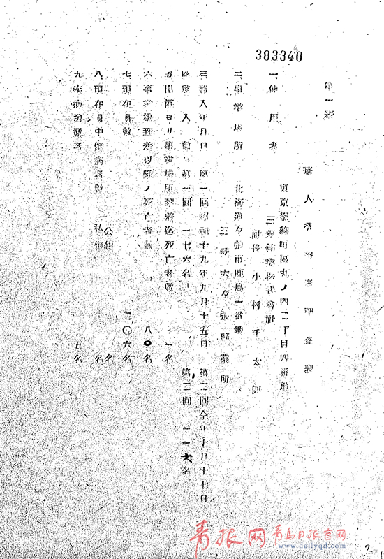 《第二表》(其他企業(yè)一般稱之為《移入華人勞務(wù)者名簿》)包括“編成番號(hào)、原籍、職務(wù)、氏名、年齡、摘要”等內(nèi)容,其中“摘要”包括死亡標(biāo)識(shí)、供出方式和在華職業(yè)等三項(xiàng)內(nèi)容。供出方式多標(biāo)為“行政供出”;所謂“行政供出”,實(shí)際上就是中國(guó)偽政權(quán)按照日本當(dāng)局的指令強(qiáng)行擄掠勞工,移交勞工機(jī)構(gòu)集中后,交由日軍集體押運(yùn)至日本,分配給日本企業(yè)使用的勞工征集方式。