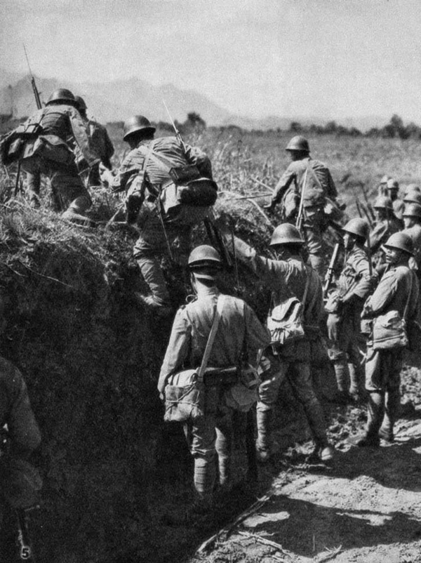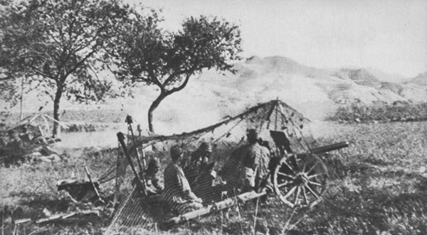 1937年9月14日,永定河岔道子附近,朝中國(guó)軍隊(duì)陣地攻擊的日軍月野炮兵部隊(duì)。