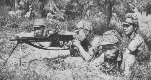 1937年9月12日,平漢線十里鋪附近,掩護(hù)日軍工兵架橋的機(jī)槍手。