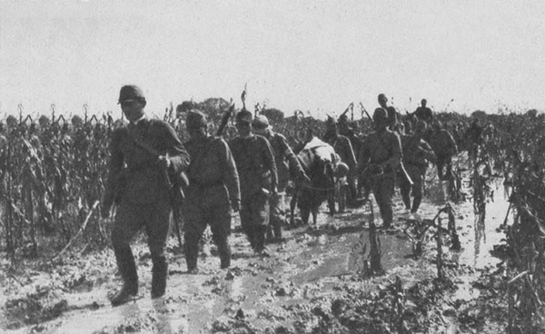1937年9月16日,華北戰(zhàn)線,楊官屯附近泥濘中前行的日軍部隊(duì)。