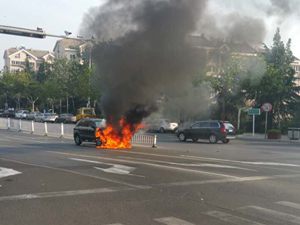 突發(fā):勁松三路與銀川西路一輛SUV自燃