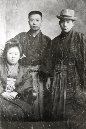周作人與周建人 中立者周作人,左一羽太信子,右一其弟羽太重九