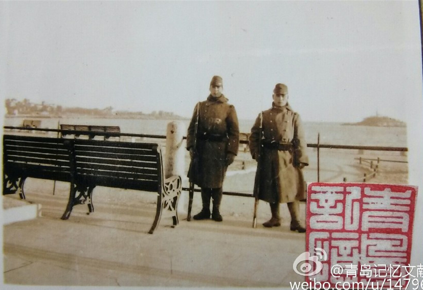 太平路上的日本士兵(圖片來自微博“青島記憶文獻陳列館”)