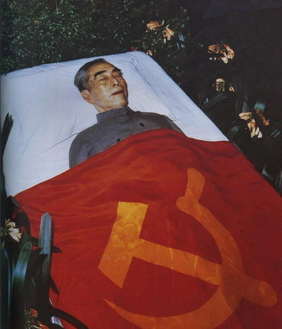 圖為周恩來的遺體,在生命的最后幾年,他忍受著癌癥的折磨,為國家和人民鞠躬盡瘁。