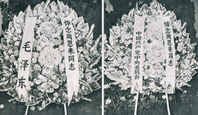 圖為毛澤東送的花圈,他未能出席追悼會既是遺憾,也給人們留下了想象的空間。