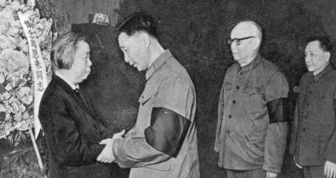 圖為王洪文慰問鄧穎超,他的身后分別是葉劍英和鄧小平。