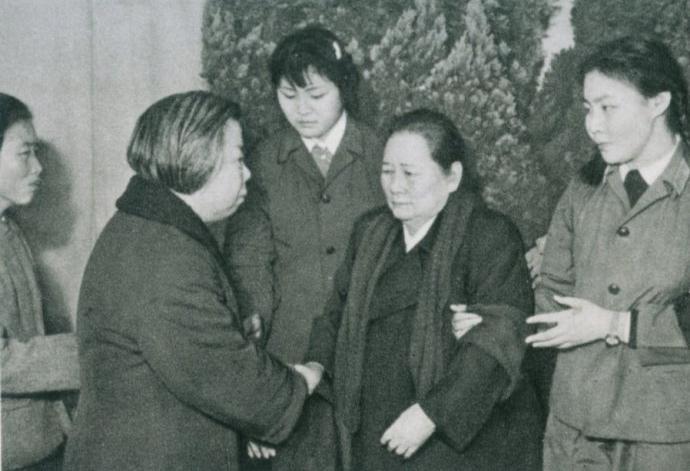 慰問鄧穎超的宋慶齡難掩悲傷。