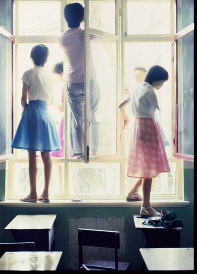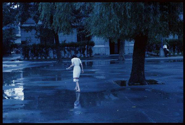 1984年6月,雨后,以為女學(xué)生在北京171中學(xué)操場散步。