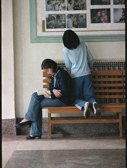 1985年9月,兩個(gè)女中學(xué)生在北京東城區(qū)第五俱樂部宣傳欄旁。
