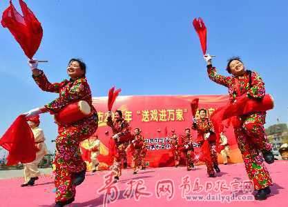 ????聽,熱情的腰鼓聲在富饒的土地上狂飆!鼓敲得粗獷豪爽,舞跳得剛勁潑辣!這里就是“膠東之花”柳腔的故鄉(xiāng)——即墨。千年的文化,伴隨著強勁有力的鼓點散發(fā)開來,響徹在城市的廣場中,響徹在鄉(xiāng)村的戲臺上。鼓聲中,有對城鄉(xiāng)巨大變化的喜悅,更有對未來美好生活的新憧憬!