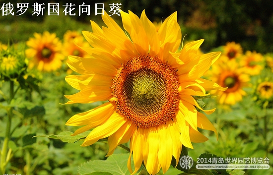 ????俄羅斯國花——向日葵(Helianthus annuus)別名葵花、轉(zhuǎn)日蓮,菊科向日葵屬一年生草本植物。株高1—3米,莖粗壯直立,被 剛毛;頭狀花序單生莖頂,舌狀花黃色,雄性;管狀花紫褐色,兩性花期7—10月,果熟期9—11月。觀賞品種有紫花種(Purpureus)。原產(chǎn)北美,中國各地廣為栽培。性喜溫暖,適應(yīng)性強,喜陽光充足,耐旱,耐瘠溥。播種繁殖,適作園林中的背景材料,也可用于作切花。種子可食可榨油。16世紀(jì)初,西班牙人在秘魯和黑西哥山地上發(fā)現(xiàn)成片生長的向日葵,認為是“上帝創(chuàng)造的神花”,將之帶回歐洲栽培。