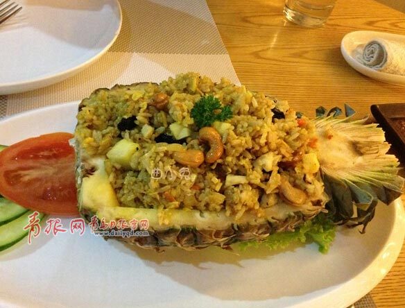 如果還得吃個主食的話,那小編比較推薦菠蘿炒飯,真的是用半個菠蘿做容器的一大碗炒飯,有海鮮和雞肉可以選擇,遠(yuǎn)遠(yuǎn)的就能聞見菠蘿的香氣,很清新的一道美食。