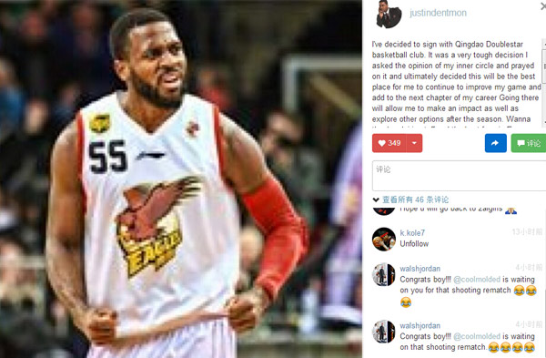 ????北京時間2014年7月29日消息,賈斯汀-鄧特蒙于當?shù)貢r間周一上午在推特上表態(tài),他已做出與青島隊簽約的決定。值得注意的是,12-13賽季開打前,CBA福建隊曾與鄧特蒙達成過簽約協(xié)議,但最終在國際籃聯(lián)的干涉下,當時鄧特蒙沒有前來中國淘金。