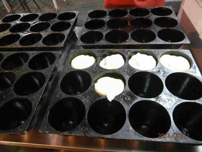 ????一個個面劑子放到模子里,烤箱一次只能烤96個。