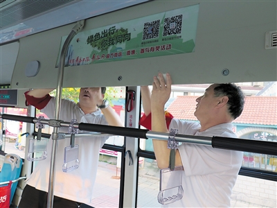 青島日?qǐng)?bào)/青報(bào)網(wǎng)“綠色出行,你我同向”公益廣告走進(jìn)交運(yùn)溫馨巴士公交車(chē),向廣大市民發(fā)出綠色出行倡議。