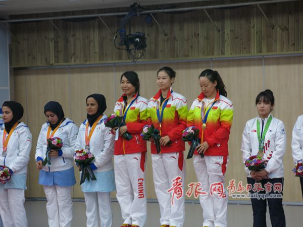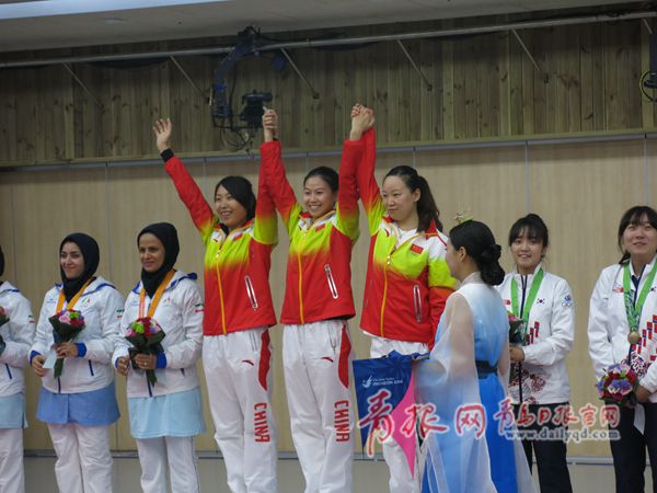 ????青島日報/青報網(wǎng)訊 仁川亞運會射擊比賽,女子10米氣步槍團體賽,由易思玲、武柳希和張彬彬組成的中國隊,以1253.8環(huán)的總成績列第一位,但因為賽后被確認,張彬彬的槍械出了問題,中國隊團體賽成績被取消,團體冠軍被成績列在第二的伊朗隊奪走,伊朗隊奪冠的成績是1245.9環(huán)。但最終中國代表團申訴成功,女子10米氣步槍團體冠軍“失而復(fù)得。”三名中國選手,易思玲、武柳希、張彬彬也攜手進入個人決賽。圖為易思玲、武柳希和張彬彬登臺領(lǐng)獎。