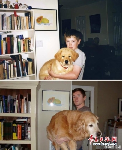 ??? 剛看到這組照片就被萌化了。汪星人的成長(zhǎng),有些是伴隨主人一起長(zhǎng)大的,幾年、十幾年慢慢的成了家庭中的一員。是不是很有愛(ài)哦。
