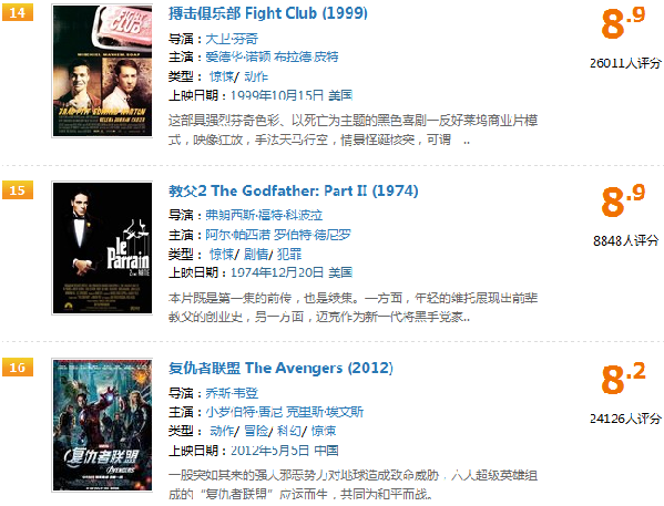 英國觀眾似乎對新片頗為偏愛,2013-2014年的影片在榜單上就多達15部,甚至剛剛上映不久的《美國隊長2》《布達佩斯大飯店》也被收入榜中。