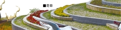 與白水臺(tái)呼應(yīng)的是展園最南面大面積的花田,花田共有八級(jí),每?jī)杉?jí)鮮花中央是用樹(shù)樁夯實(shí)的人行道,這樣游人可以享受到“人在畫(huà)中游”的勝景。臺(tái)階上的鮮花非常注重顏色搭配,紅、黃、橙交錯(cuò)搭配,明艷動(dòng)人?;ㄌ锏那胺绞且惶幟娣e較大的水池,水底蓋滿石頭,荷葉漂浮在水中央,一群群肥碩矯健的錦鯉在這里嬉戲,無(wú)憂無(wú)慮的生活令人艷羨。