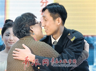 志愿者李琦與空巢老人深情擁抱。